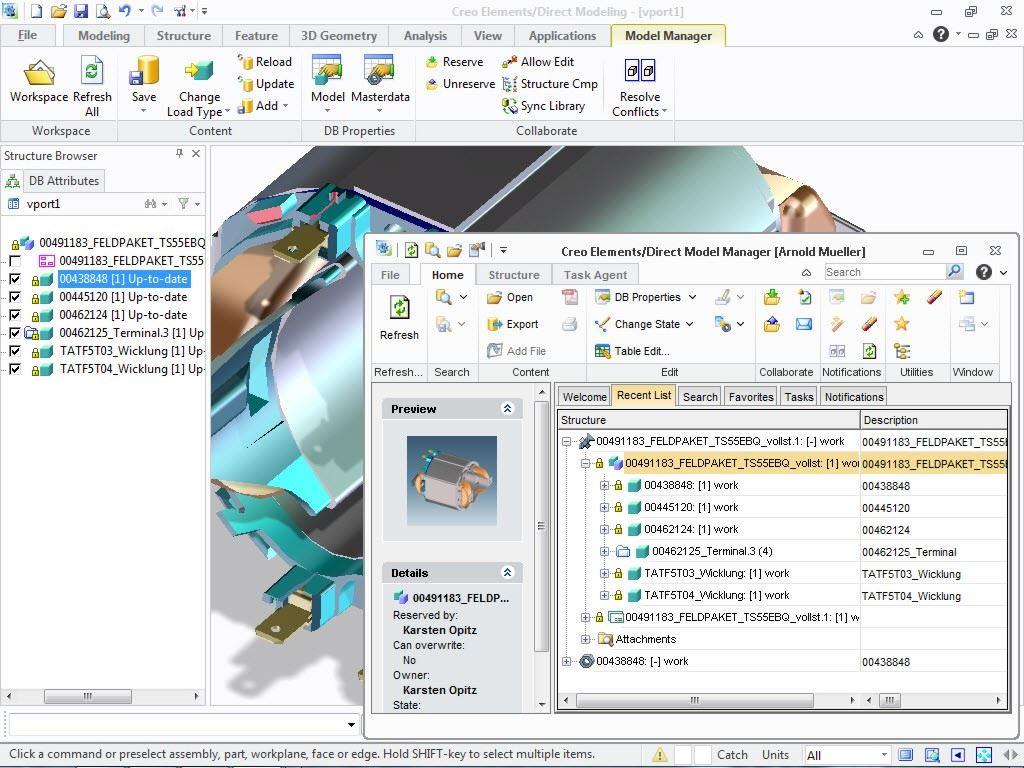 Creo Elements/Direct Model Manager organisiert Ihre Produktkonstruktionsdaten in einer zentralen Datenbank und stellt die effiziente Koordination von Entwicklungsaktivitäten sicher, ohne das Team mit unnötigem Verwaltungsaufwand zu belasten. Creo Elements/Direct Model Manager ist die integrierte Produktdatenmanagement-Komponente für Creo Elements/Direct Modeling. Mit Creo Elements/Direct Model Manager optimieren Unternehmen den Einsatz ihrer Entwicklungsteams zur Nachverfolgung und Verwaltung von Konstruktionsdaten im Produktlebenszyklus.