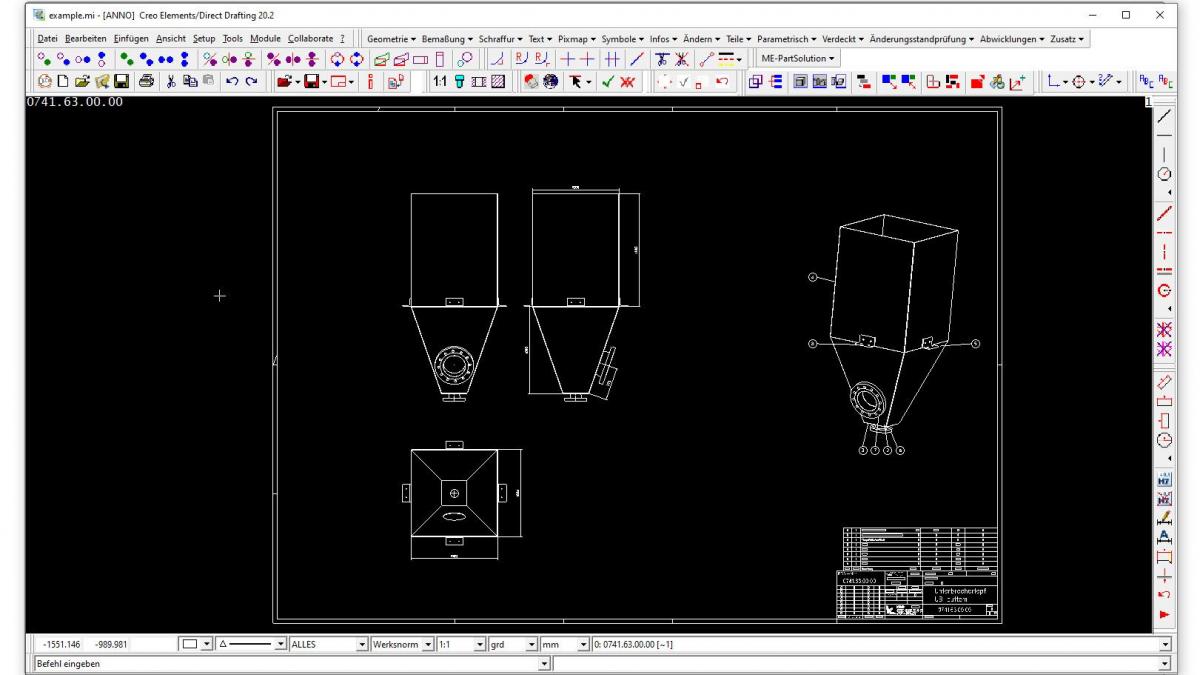 Creo Elements/Direct Drafting (ehemals CoCreate Drafting oder ME10) ist ein vollständiges 2D-CAD-System, das auf einer Teile- und Baugruppenstruktur basiert und auf die speziellen Bedürfnisse der Ingenieure und Konstrukteure in der Mechanik-Konstruktion zugeschnitten ist. Spezielle Funktionen wie Baugruppenmanagement und parametrische 2D-Funktionen erweitern die standardmäßig in der 2D-Konstruktion verfügbaren Funktionen und bieten damit eine vollständige 2D-CAD-Plattform für den Produktentwicklungsprozess.