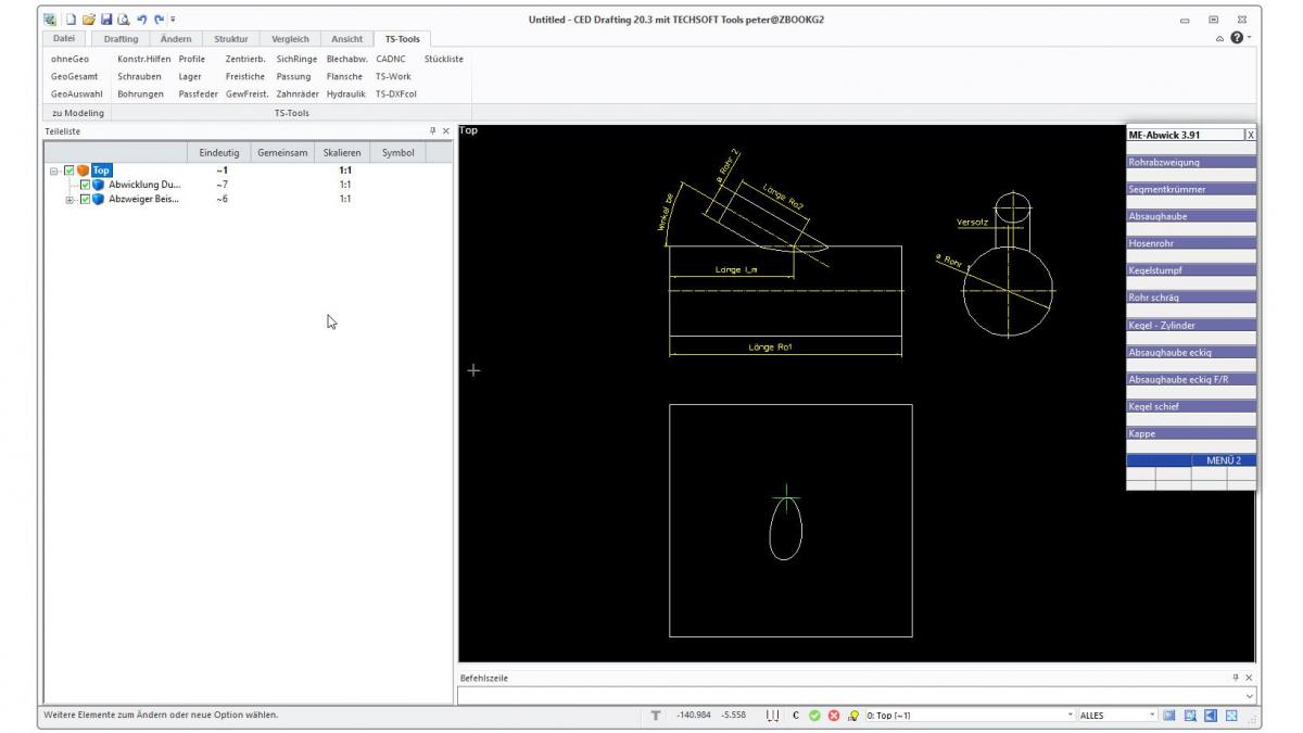 Techsoft Maschinenbaupaket: Zahlreiche Normteilbiliotheken, Blechbwicklungen, Stücklistenerstellen